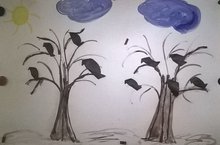 Коллективная работа детей на тему "Грачи прилетели". Марина Николаевна провела беседу с детьми и познакомила с днем 22 марта - "День птиц"- днем жаворонка, грача, сороки и др.птиц. Рассказала детям, о традициях встречи весны у русского народа, закрепила представление о весне, как времени прилета перелетных птиц, уточнила представление о перелетных птицах нашего края.