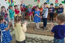 Ралия Исмагиловна, с детьми младшей группы закрепляет игру "Бар безнен бакча".