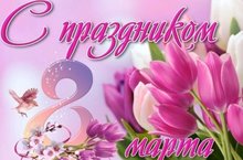 С 8 Марта, девушки, девченки, милые мамы, любимые наши бабушки! Весна приносит кому веселье и любовь, кому заботы и работу, желаем всем, чтобы заботы совмещались с любовью, а работа с весельем, счастья жизни, романтики весенней, достатка не бюджетного, удовольствия в труде, удачи и успехов, а здоровья — железобетонного! Пусть в Вашей жизни будет больше ярких и радостных дней! Всего самого доброго, удачного и счастливого Вам и Вашим близким!
