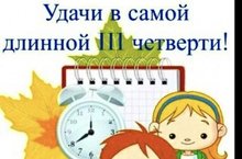 Уважаемые коллеги, родители и ученики!Поздравляем Вас с началом третьей четверти! Желаем коллегам - творческих успехов; родителям - терпения; ученикам - хороших отметок и прочных знаний.Начинается 3 четверть. Мы ждем Вас, отдохнувших и полных решимости окончить эту самую длинную учебную четверть хорошо и отлично!Дорогие ребята и учителя! Третья четверть самая насыщенная событиями, конкурсами, учебными и внеклассными мероприятиями.Желаем всем творческих успехов, оптимизма, побед! Творите, дерзайте. ПОБЕЖДАЙТЕ!!!Побольше солнечных дней, всем крепкого здоровья и отличного настроения! -