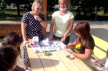 Учителями гимназии на детской площадке организован досуг для детей. Педагоги играют с ребятами в настольные и подвижные игры, проводят с ними беседы.