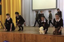 Инсценировка военных песен учащимися 1, 5, 6 классов прошел на высоком уровне.