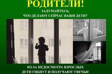 Уважаемые родители! Соблюдайте меры предосторожности при пользовании окнами в летний период, будьте бдительны! В связи с наступлением летнего периода, участились факты падения малолетних детей из окон квартир по месту их жительства. В г.Казани за прошедший месяц уже зафиксировано 2 подобных случая. -
