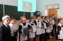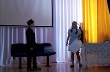 Татар теле атналыгында 6 А сыйныфы укучылары тамашачыларга татар теле һәм әдәбияты укытучысы Әхметшина А.А. җитәкчелегендә "Беренче театр" спектакленнән өзек курсәттеләр.