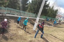 Сегодня учащиеся гимназии провели в порядок спортивную площадку и территорию вокруг школы.