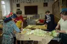 В гимназии засолили капусту в количестве 100 кг, выращенную силами учеников.