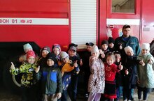 Специально для юных гостей сотрудники учреждения разрешили ребятам подняться в машины, примерить на себя форму, ощутить себя юными пожарными.