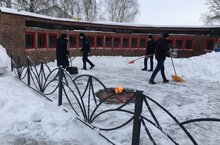 Отряд профилактики и правонарушений совместно с отрядом юнармейцев ведут активную уборку территории возле памятника погибшим воинам от снега. 28.01.2024