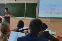 Продолжаются и открытые уроки. Сегодня своё мастерство в обучении языку показала учитель родного языка Нуртдинова А. Х. Урок родного (татарского) языка в 10 б классе на тему: «Бәйлек һәм бәйлек сүзләр»