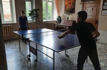 Ребята сегодня занимались уборкой территории школы. После обеда ребята играли волейбол, настольные игры и теннис.