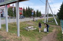 Сегодня ребята занимались благоустройством школы (собирали мусор возле школы, мели двор). После обеда играли в мафию b волейбол.