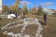 На территории навели порядок на клумбах и собрали листву.