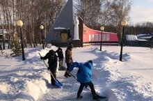 Сегодня учащиеся 7 класс расчистили памятник ВОВ от снега
