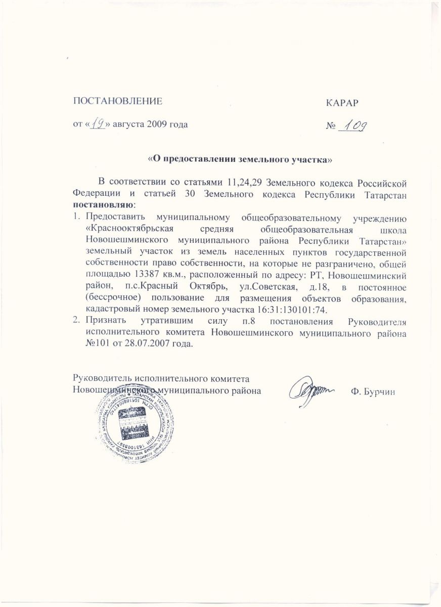 Постановление о земельном участке