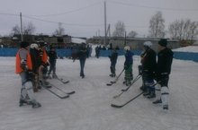 17 февраля в рамках военно- патриотического месячника провели хоккей среди учащихся .