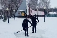 Патриотическая акция «Память поколений». Отряд Юнармии очистили Памятник Павшим в Великой Отечественной войне и труженикам тыла от снега.