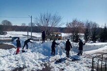 Сегодня в нашей школе прошел средник. Сотрудники и учащиеся школы раскидывали снег.