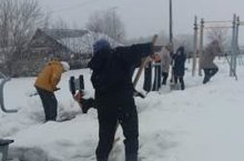 Сегодня учителя совместно с тех персоналом очищали территорию школы от снега.