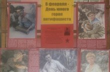 8.02.2017 г. библиотекарь Козлова Л.А. совместно с советом старшеклассников оформили стенд на тему "8 февраля - День юного героя антифашиста".