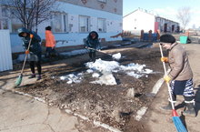 Коллектив Краснооктябрьского детского сада "Солнышко" 27 марта вышли на уборку территории