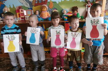 Занятие в сташей группе по аппликации на тему "Ваза с ветками" 01.04.2015