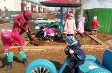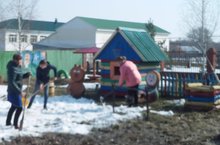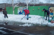Сотрудники детского сада на среднике, раскидываем снег 05.04.2017