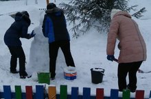 Сотрудники детского сада на постройке снежного, сказочного, новогоднего городка . 20.12.2016