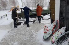 Отряд Юнармейцев очистили территорию памятника ВОВ от снега. Помогли одиноким, пожилым в очистке дворов от снега.
