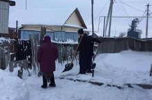 Волонтёры Ленинской СОШ совместно с Сабировом И. Т оказали помощь по очистке придомовой территории от снега Григорьевой А. А