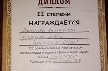 Сегодня в районе проводилась 3 научно- практическая конференция школьников "Дети в мире науки", в которой приняли участие учащиеся нашей школы. Поздравляем ученицу 6 класса Валасееву А. ,которая заняла 2 место.