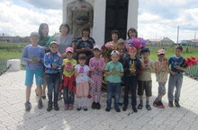 Был проведен митинг около памятника павшим воинам. Мы зажгли свечу памяти, возложили цветы к памятнику, почтили память погибших воинов минутой молчания. Посмотрели видеоролики – работы республиканского конкурса «Наша Победа», победившие в номинации «Обращение к ветеранам».