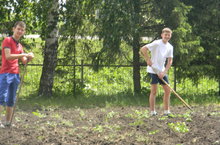 Дети летнего трудового лагеря пропололи и полили капусту, затем провели шуточные эстафеты на спортивной площадке.