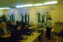 В начале родительского собрания выступила педагог-организатор Михайлова Л.Н. с докладом на тему: «Воспитание толерантности в семье». В связи с тем, что в современном мире люди стали проявлять неоднозначное отношение к беженцам, вынужденным переселенцам, людям «кавказской национальности». А также в обыденной жизни многим не хватает толерантности и по отношению к престарелым людям, инвалидам, людям с физическими недостатками, подросткам с их сленгом, манерой одеваться и т.д. Также Михайлова Л.Н. осветила вопрос: «Скажем экстремизму-нет!» В данном докладе были озвучены недавние события, связанные с экстремистскими действиями , которые волной прокатились по Республике Татарстан, в частности в нашем районе. Далее перед родителями выступила Козлова О.В. по теме введения ОРК и СЭ в образовательный процесс. Была проведена презентация учебника по ОРК и СЭ. Далее для родительской аудиории был показан видеофильм антинаркотической направленостиСледующим в программе родительского собрания было выступление заместителя директора школы по учебно-воспитательной работе Холиной Н.Н. с темой «Учебный процесс в школе», где были затронуты вопросы тестирования учащихся с 4 по 11 класс, а также процесс подготовки к ГИА и ЕГЭ. Также директор выступила с объявлением, что в период с 25 по 31 декабря будет работать зимний пришкольный лагерь. После общего собрания, родители разошлись по своим классам для бесед с классными руководителями.
