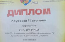 18 февраля учащиеся музыкального отделения класса гитары Мусин Мансур и Хиразев Юсуф приняли участие в XXIX Региональном фестивале детского и юношеского творчества "Поющий соловей" г. Альметьевск, где в номинации "Исполнитель на народных инструментах. Сольное исполнение на гитаре" Хиразев Юсуф стал Лауреатом II степени, Мусин Мансур получил Диплом фестиваля. Поздравляем ребят и их педагога Наумову Гулиру Гумаровну с успешным выступлением. Желаем ребятам и педагогу творческих успехов и новых побед!