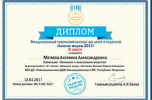Международный творческий конкурс "Золотая медаль" Мятлева Ангелина 13.03.2017