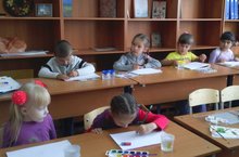 Первый урок в подготовительном классе прошел в художественном отделении на тему "Осенние листья", педагог Рамазанова Г.М. С ребятами была проведена беседа по картине И.С. Остроухова «Золотая осень». Сделали сравнительный анализ листьев деревьев: липы, осины, березы, яблони, клена, тополя. Педагог на классной доске показал последовательность изображения одного из листьев, дети самостоятельно выполнили работы листьев в своих альбомах. Подведением итога урока стало коллективный анализ детских рисунков.