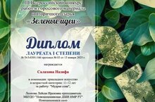 Ученица художественного отделения Салихова Назифа приняла участие в III Всероссийском конкурсе работ из бросового и вторичного материала "Зеленые идеи" Международного центра "АртПтица" и получила Диплом Лауреата I степени в номинации:прикладное искусство в возрастной категории 11-12 лет за работу "Мудрая сова". Педагог Леонова Л.И. отмечена Благодарственным письмом за подготовку лауреата. Поздравляем Назифу и ее Лейсан Ириковну с отличным результатом!