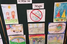 В фойе второго этажа школы оформлена выставка рисунков учащихся младших классов художественного отделения "Мы за мир".