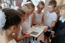 Библиотекарь школы Пьянзина С.Г. провела для учащихся 3 класса хореографии беседу у книжной полки "Мир искусства детскими глазами".