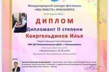 На международном конкурсе - фестивале "Мы вместе"в г.Красноярске ученик музыкального отделения по специальности фортепиано Каиригильдинов Илья получил Диплом II степени в номинации "фортепиано". Он исполнил "Танец медвежат" юрия Виноградова. Поздравляем Илью и его педагога Кузнецову Елену Николаевну с победой! Желаем творческих побед и новых достижений!