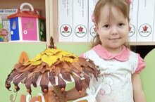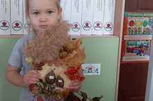Прыткова София со своей поделкой на тему: "Осень в гости к нам пришла" Спасибо родителям за участие.