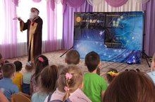 3 апреля в нашем детском саду мини-спектакль для детей представили сказочные персонажи. Тема представления:Космическая галактика.