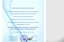 Логопед Койтемирова А.А. приняла участие во Всероссийском конкурсе "Педагогический опыт. Идеи. Инновации.", в номинации "Учебно-методические работы" по теме "Рекомендации по проведению логопедических занятий с заикающимися детьми, она награждена Дипломом. Поздравляем Аиду Арсланбековну.