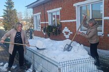 Сотрудники Центра детского творчества на прилегающей территории: раскидали снег, убрали мусор. -