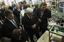 Заместитель исполнительного комитета по социальным вопросам Семеняк В.Н., начальник отдела образования Еронтьев А.Л., заведующая отделом Республиканского центра внешкольной работы Министерства Образования РТ Веснянкина И.В., торжественно открыли новое минипроизводство.