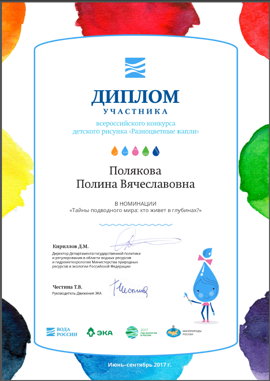 11. Полякова Полина Вячеславовна, конкурс детского рисунка "Разноцветные капли"