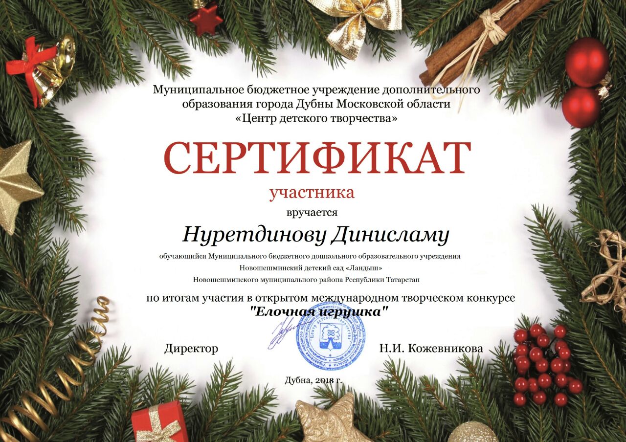 3.Нуретдинов Динислам Открытый международный творческий конкурс "Елочная игрушка"