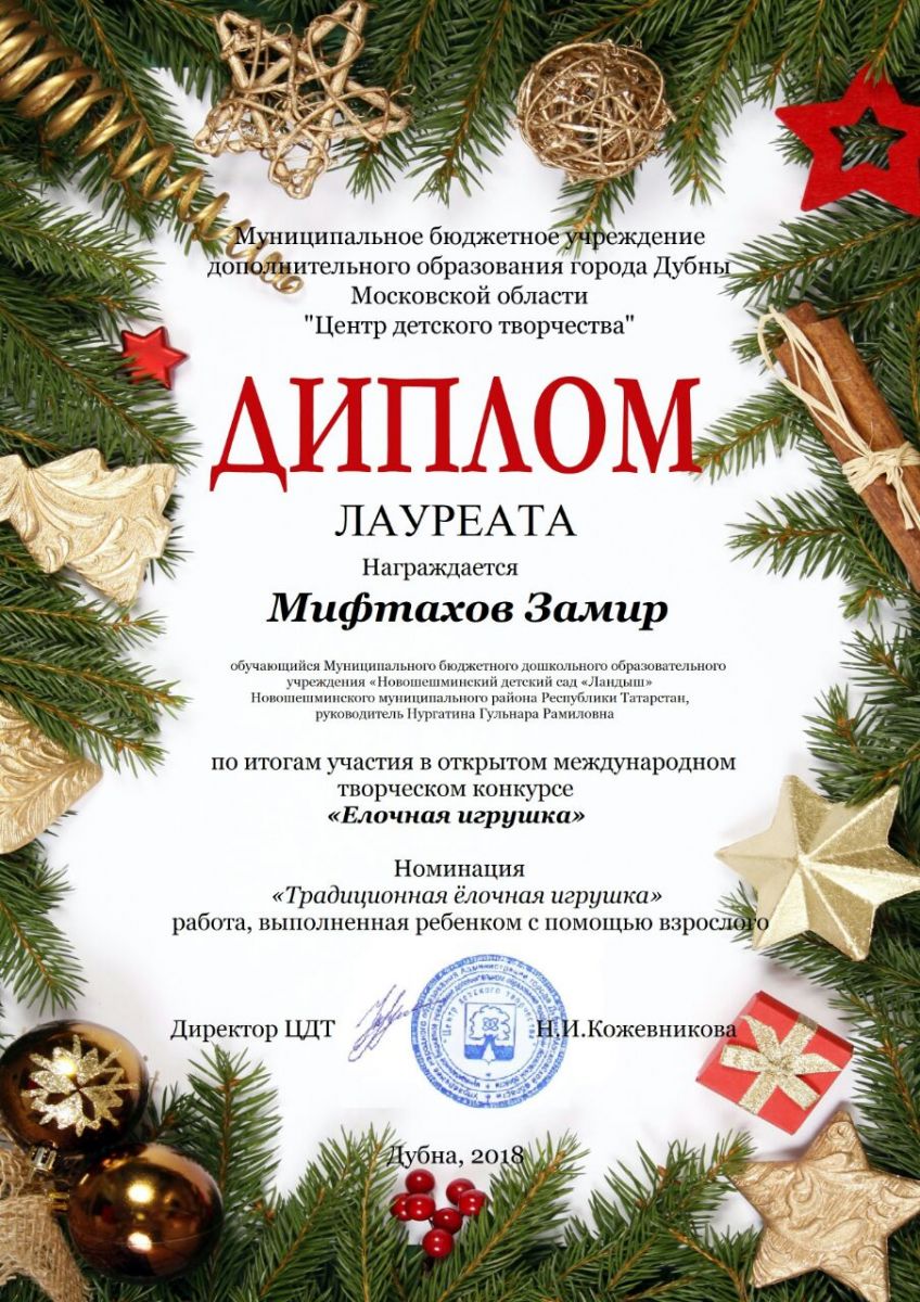 4. Мифтахов Замир Открытый международный творческий конкурс "Елочная игрушка"