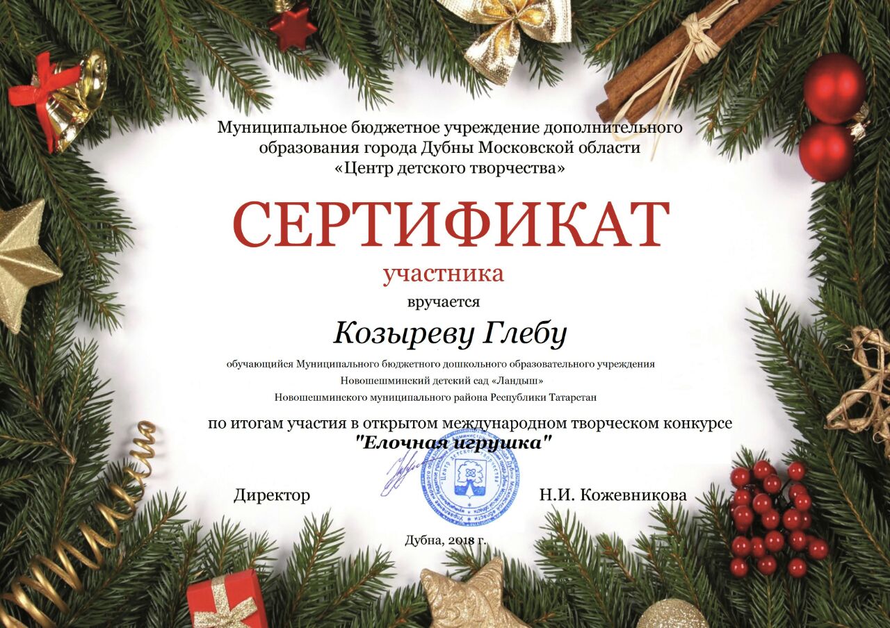 5. Козырев Глеб Открытый международный творческий конкурс "Елочная игрушка"