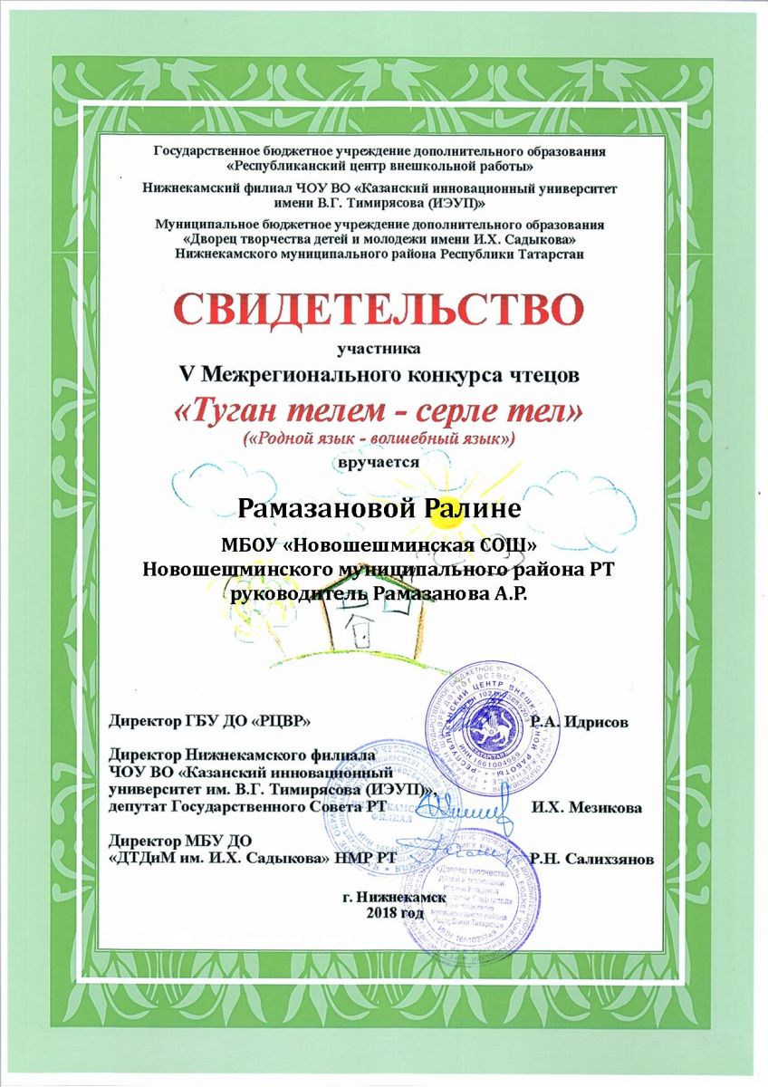 7. Рамазанова Ралина Межрегиональный конкурс чтецов